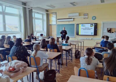 Dana 12. veljače 2026. godine u našoj školi održano je predavanje policijske službenice Irene Held na temu Prevencija raznih oblika nasilja među djecom i mladima, u sklopu projekta „Živim život bez nasilja“. Predavanju su prisustvovali učenici sedmih razreda, koji su kroz edukativan i interaktivan pristup imali priliku naučiti više o prepoznavanju nasilja, njegovim posljedicama te važnosti pravovremenog reagiranja i traženja pomoći.