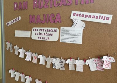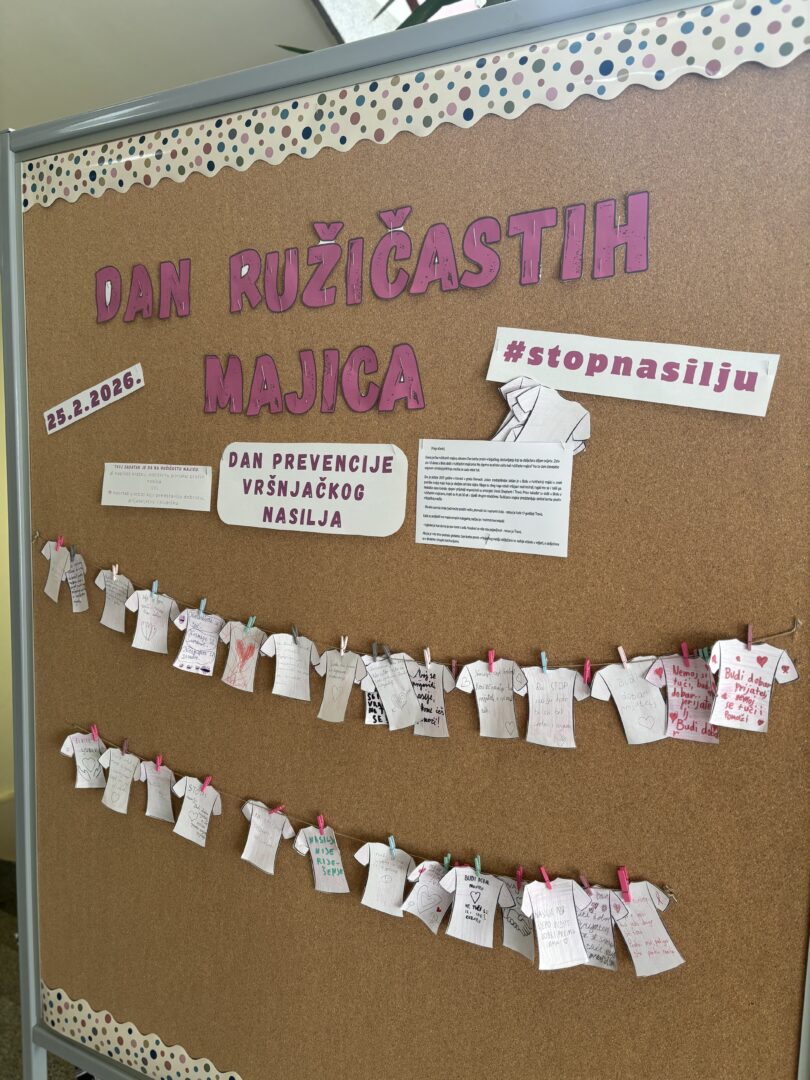 Ova aktivnost provedena je u sklopu obilježavanja Dana ružičastih majica – dana posvećenog prevenciji vršnjačkog nasilja. Također, jučer su učenici povodom Dana ružičastih majica sudjelovali u aktivnosti u školskom holu. Na pano su pisali pozitivne poruke protiv nasilja te crtali simbole koji predstavljaju podršku, prijateljstvo i zajedništvo.