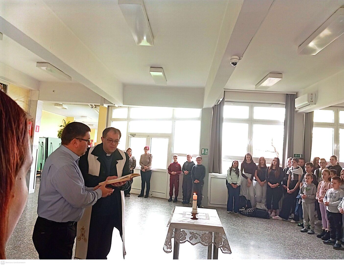 U petak, 16. siječnja župnik župe sv. Antuna Padovanskog u Starom Petrovom Selu Mario Cimbal blagoslovio je našu školu zazvavši pomoć i zaštitu Duha Svetoga za sve učenike i djelatnike.
