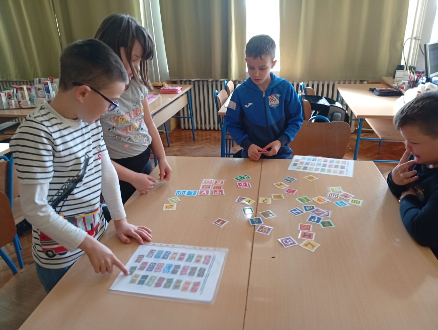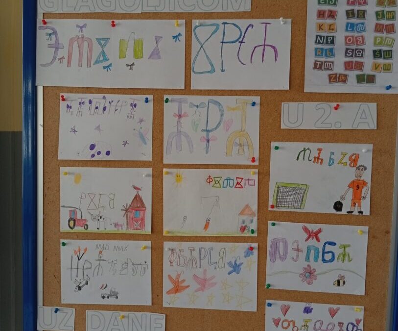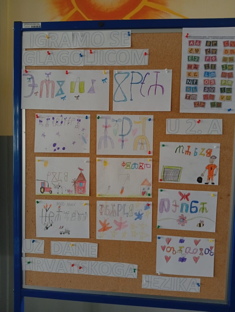 Dane hrvatskoga jezika učenici 2. A obilježili su radionicom s knjižničarkom Snježanom Jureković na kojoj su se upoznali s glagoljicom pomoću igre memori u kojoj su povezivali latinička s glagoljičkim slovima.