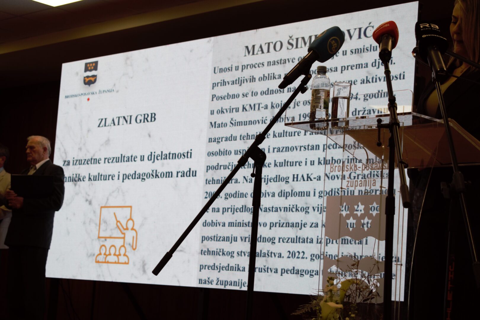 Na svečanosti povodom Dana Brodsko-posavske županije Mato Šimunović nagrađen je Zlatnim grbom za životno djelo, kao priznanjem za predan i dugotrajan rad u odgoju i obrazovanju mladih generacija.